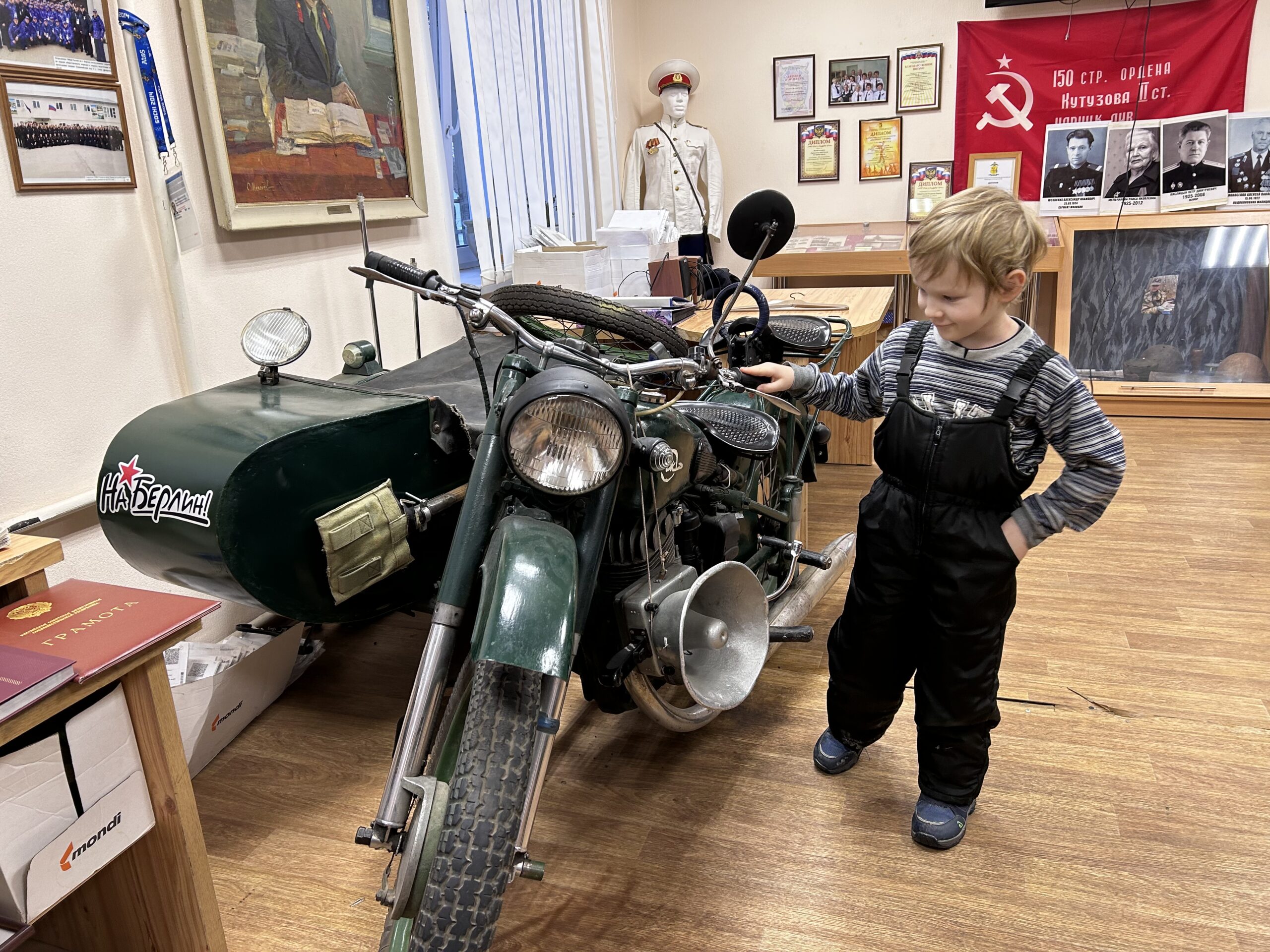 Ярослав пока точно не знает, хочет он быть оперативным сотрудником, работать в патрульно-постовой службе или стать следователем. Чтобы помочь с выбором, для него была организована очень насыщенная экскурсия. Мальчик побывал в диспетчерской, где на огромных мониторах весь город, будто на ладони. Ничто не ускользает от глаз сотрудников. Произошло ДТП или напали хулиганы — все это будет зафиксировано. Но так было не всегда – камеры сравнительно недавно пришли на помощь полицейским. Еще несколько десятилетий назад улицы патрулировали сотрудники на мотоциклах. Один из них стоит в музее, но до сих пор на ходу. Этот экспонат особенно заинтересовал юного полицейского. А чтобы все было по-настоящему, мальчику подарили фуражку и разрешили посидеть в кресле начальника в зале совещаний.