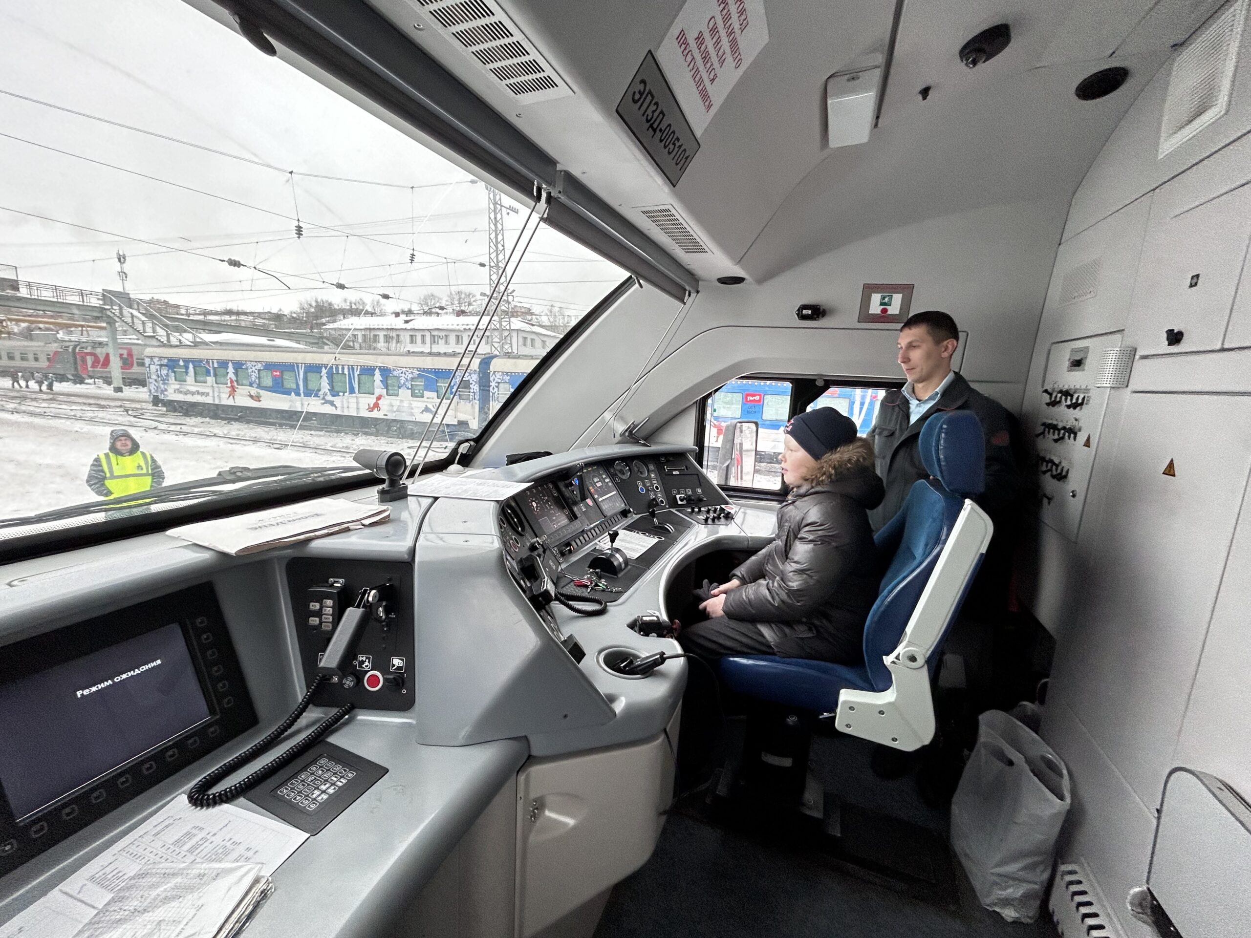 Ну а дальше — самое интересное. Юный железнодорожник смог почувствовать себя машинистом и вместе с опытным наставником доставил пассажиров из Кирова в Лянгасово на современной электричке.
